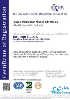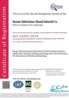 Alismail Industrial Co. stands as a fully certified Saudi manufacturer with verified capability across quality, safety, environment, cybersecurity, smart-industry readiness, and fire-retardant product performance. The company holds ISO 9001, ISO 14001, and ISO 45001, confirming disciplined operations and safe, reliable manufacturing. It’s officially recognized by the Local Content & Government Procurement Authority and maintains Saudi Made memberships for steel, wood, and laboratory furniture. On the technology side, Alismail is certified under the Saudi Aramco cybersecurity program and registered in the Smart Industry Readiness Index (SIRI). Product-wise, Alismail’s materials and components meet international fire-retardant and performance standards across MDF, HPL, foam, fabrics, PU leather, bedding, lighting, and more — covering EN, BS, ASTM, ISO, GB, and IEC certifications.
