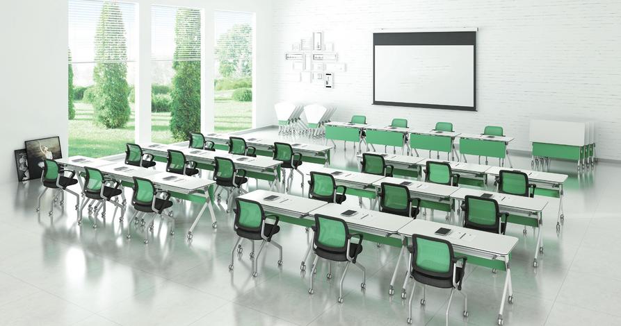 Standard classroom setups covering desks, chairs, storage, and essential teaching elements.