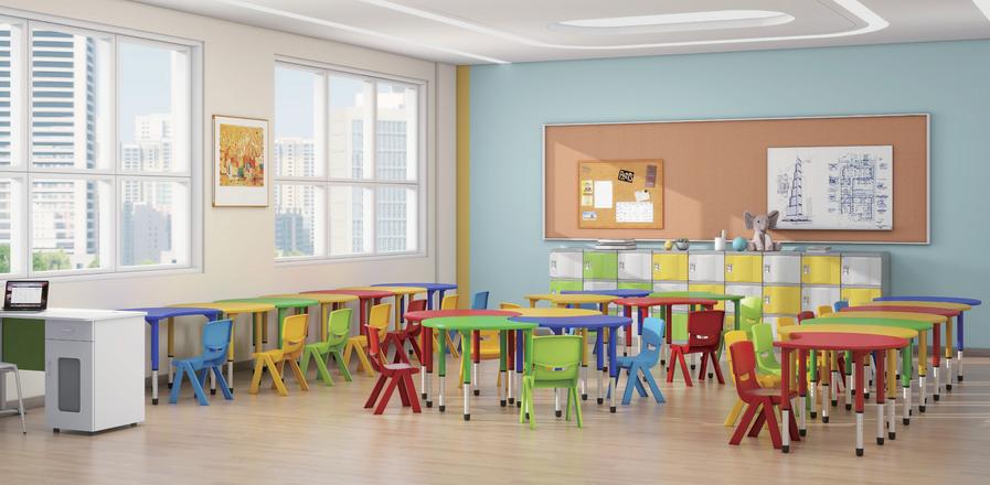 Safe, rounded-edge furniture designed for young children with bright colors and stable construction.