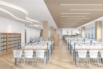 Shelving, study desks, and reading-area seating optimized for quiet and organized learning zones.